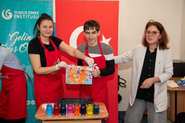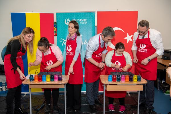 T.C. Köstence Başkonsolosu Ozan Çakır, Yunus Emre Enstitüsü Romanya Koordinatörü Mustafa Yıldız, Köstence "Maria Montessori" Özel Eğitim Okulu Müdürü Giubernea Roxana, çocuklar ile öğretmenlerinin de katıldığı programda özel çocukların sabır ve emek gerektiren bir uğraşı olan ebru sanatı ile farklı bir deneyim kazanmaları sağlandı.
