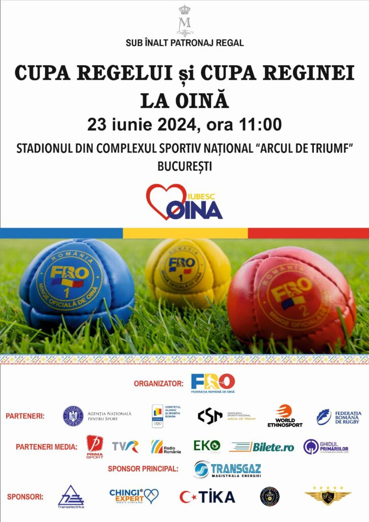 Dünya Etnospor Konfederasyonu üyesi olan Romanya Oina Federasyonu tarafından düzenlenecek olan ve Romanya’nın kraliyet ailesi tarafından himaye edilen Kral Kupası ve Kraliçe Kupası müsabakaları, 23 Haziran 2024 Pazar günü saat 11.00’de Bükreş’teki Arcul de Triumpf Stadyumu’nda gerçekleştirilecek.