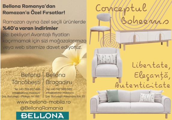 Mobilya sektörünün önde gelen markalarından Bellona Romanya, Ramazan ayına özel kaçırılmayacak bir kampanya başlattı. Tüm mağazalarında ve online satış platformunda geçerli olan kampanya kapsamında, seçili ürünlerde %40’a varan indirimler sunuluyor.