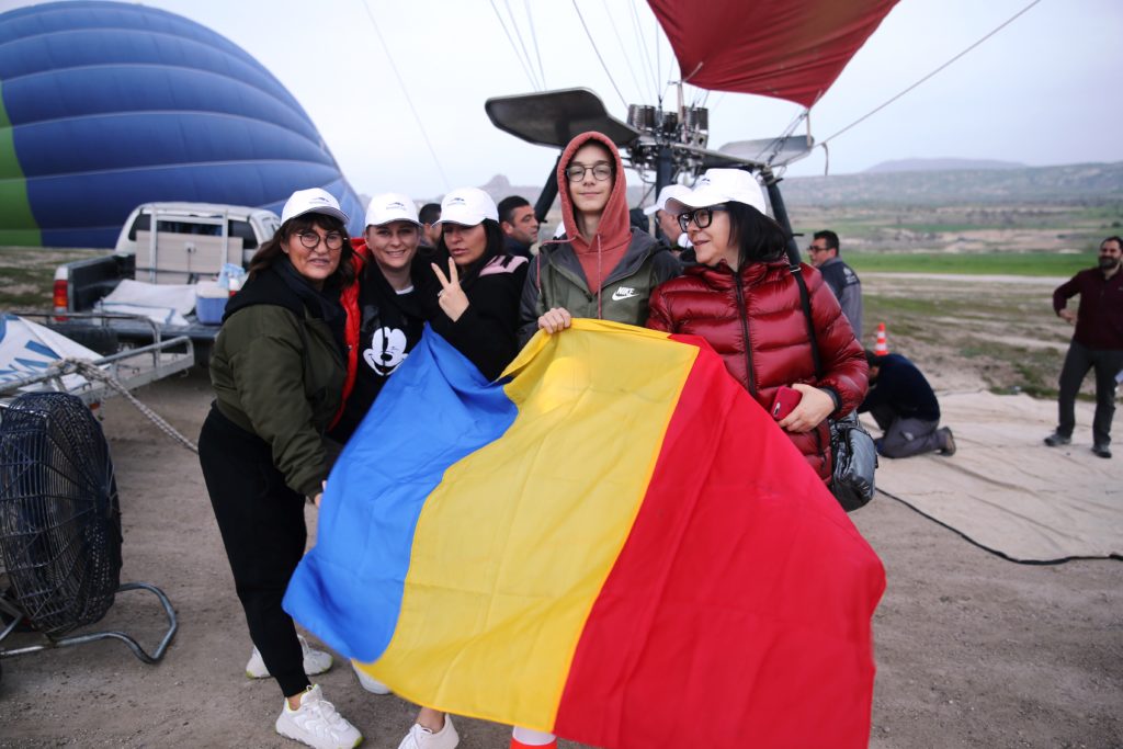 Sepetine Romanya bayrağı takılan sıcak hava balonu, ilk uçuşunu Büyükelçi Gabriel Şopanda ve büyükelçilik çalışanları ile gerçekleştirdi.