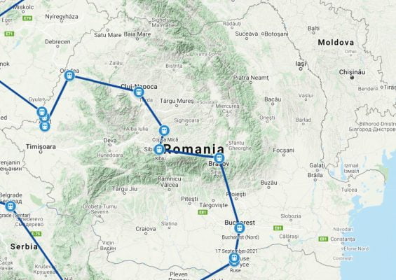 17 Eylül’de Romanya’ya girecek AB treni 850 kilometre yolu yaklaşık 20 saatte kat ederek 19 Eylül’de Romanya’dan ayrılacak.