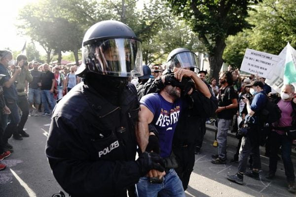 Bu arada Berlin kent merkezindeki Unter den Linden Caddesi'nde toplanan ardından Friedrich Caddesi'nde devam eden yürüyüş, göstericilerin maske ve sosyal mesafe kurallarına uymadıkları gerekçesiyle polis tarafından sonlandırıldı.