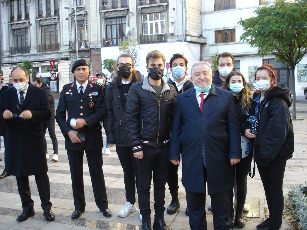 Calea Victoriei caddesi üzerindeki Atatürk Büstü önünde gerçekleşen törende bir dakikalık saygı duruşunda bulunularak İstiklal Marşı’mız okundu.
