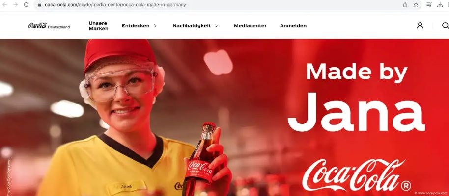 Örneğin reklam afişlerinde Daniel, Jana, Heike, Jessy ve Muhammed gibi isimlerle bu isimleri yansıttığı düşünülen kişilerin fotoğrafları yer alıyor. Ve afişte "Daniel tarafından üretildi" yazısının tam altında Coca-Cola'nın logosu yer alıyor ve yine hemen altında "Made in Germany" deniliyor.