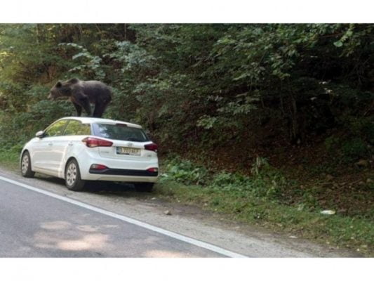 *Romanya’da Argeş ili Valea lui Stan yerleşim birimi girişinde park halindeki bir arabaya çıkan ayı ciddi hasara yol açtı