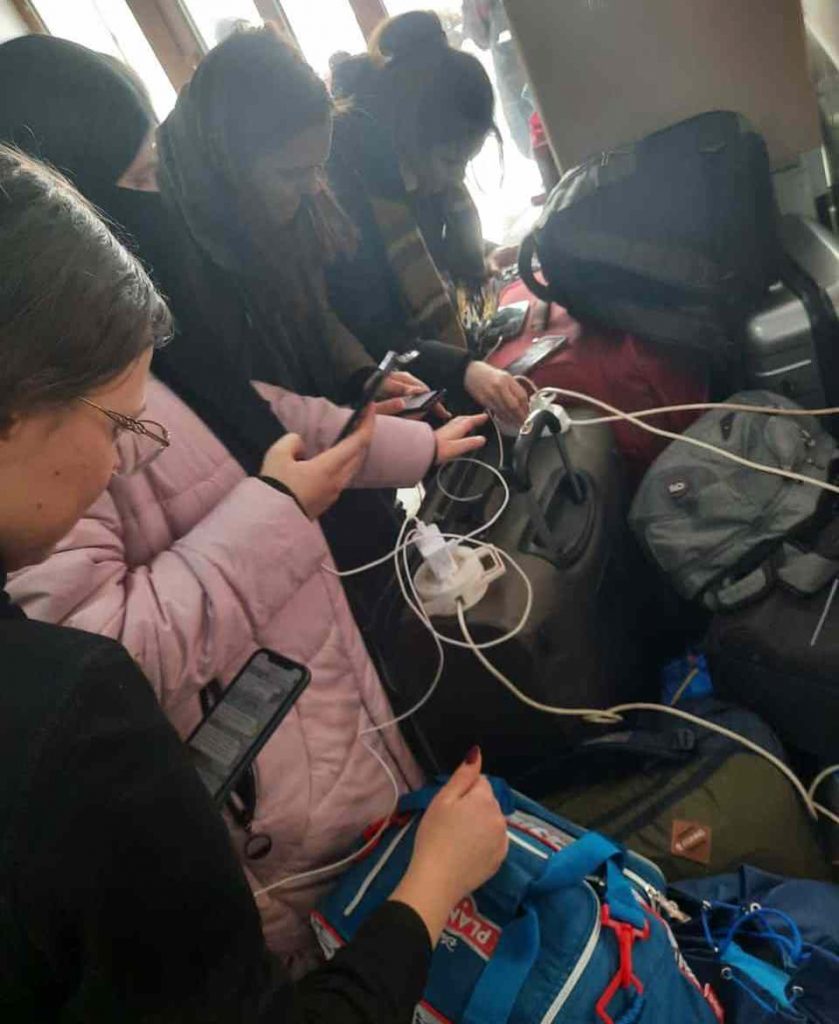 Ukrayna’dan Bükreş’e bazen 50 saati bulan tren otobüs yolculuğundan sonra ulaşan vatandaşlar yakınlarını haberdar etmek için bir an önce telefonlarının pilini şarj etmek için yarıştı.