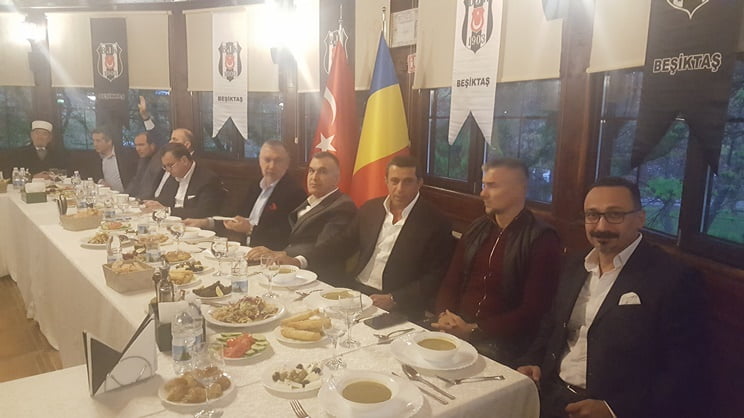 Romanya Beşiktaşlılar Derneği Başkanı Rıza Türkmen ve Alper Yollu’nun ev sahipliği yaptığı iftar yemeğine Bükreş Büyükelçiliği Birinci Katibi Ufuk Türkkan, Beşiktaş Kongre Üyeliği dahil çeşitli kademelerinde görev almış olan TİAD Başkanı Ufuk Tandoğan, DEİK Türkiye-Romanya İş Konseyi Başkanı Ömer Süsli, DEİK Türkiye-Romanya İş Konseyi Başkan Yardımcısı Güven Güngör, Romanya Galatasaraylılar Derneği Başkanı Ali Rıza Koska, Romanya Fenerbahçeliler Derneği Başkanı Olcay Kızıl, Romanya Trabzonsporlular Derneği’nden Mehmet Fazlıoğlu, Romanya Alevi Kültür Merkezi Başkanı Şakir Aydoğan, soydaş dernekleri başkanları ve mensupları ile Beşiktaş taraftarları katıldı.