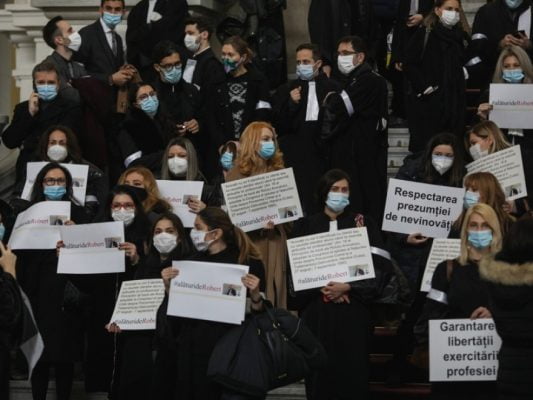 Avukat Robert Roșu, Băneasa Çiftliği'nin yasadışı iadesi davasında, ilk etapta beraat ettikten sonra kesin olarak beş yıl hapis cezasına çarptırıldı. Onlarca avukat protesto sırasında avukat meslektaşlarına desteklerini ifade eden pankartlar sergiledi, avukatların temsil ettikleri müvekkillerle özdeşleştirilmemesini talep etti.