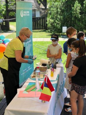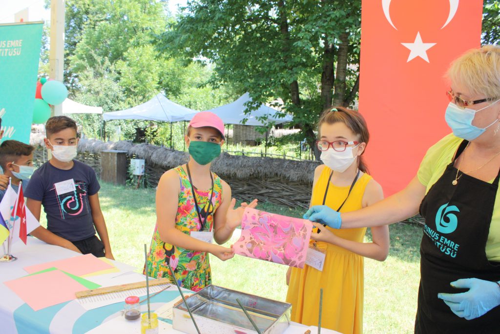 Koronavirüs nedeniyle kısıtlı sayıda katılımcı ile yapılan etkinlikle küçük misafirler ve velileri ebru sanatçımız Rodica PîRVAN’dan Türk Ebru Sanatı’yla ilgili bilgi aldılar ve ebru teknesinin başına geçip hayatlarının ilk ebrusunu yaptılar.