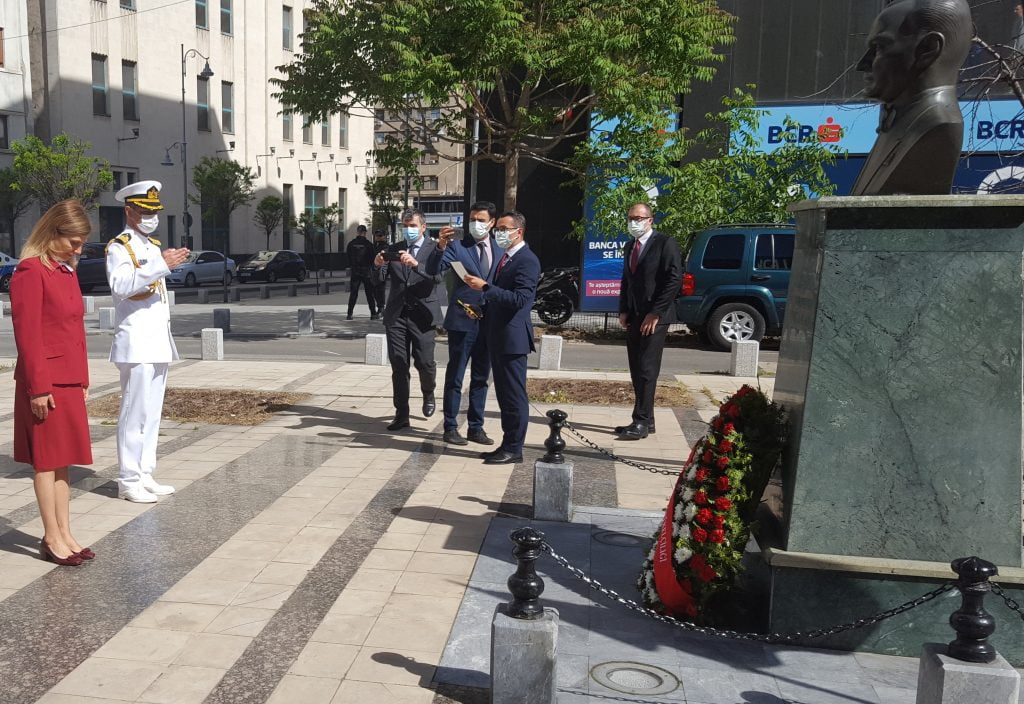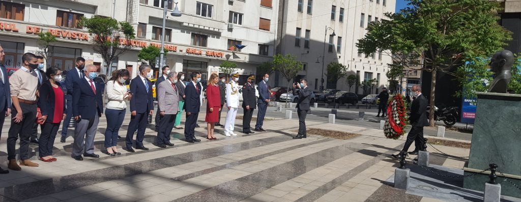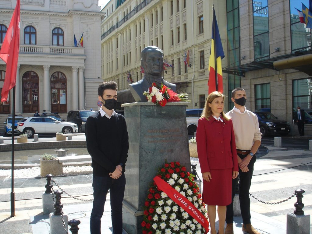 Bükreş Büyükelçisi Füsun Aramaz, 19 Mayıs günü saat 10.00’da Calea Viktoriei cadedesi üzerindeki Atatürk Büstü’ne çeklenk bırakarak saygı duruşunda bulundu. Saygı duruşunun ardından İstiklal Marşımız okundu.