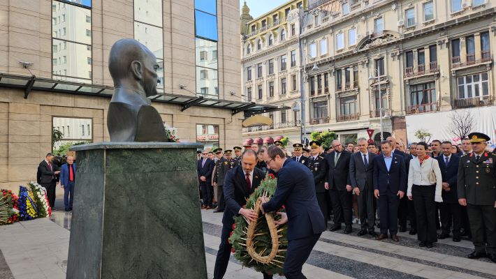 Tören, saygı duruşu ve milli marşımızın okunması ile başladı. Daha sonra Türkiye Cumhuriyeti Bükreş Büyükelçisi Özgür Kıvanç Altan Atatürk Büstü’ne çelenk koyarak saydı duruşunda bulundu.