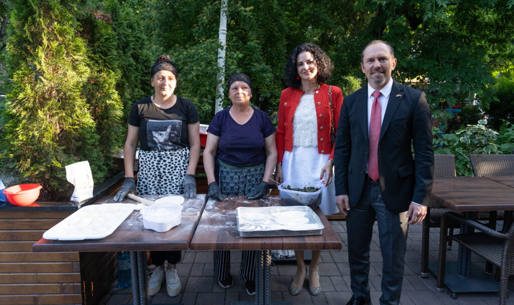 Hataylı kadınların hazırladıkları mutfak ürünlerinin sunulduğu etkinlikte Bükreş Altan, davetlilere İngilizce bir konuşma yaptı.