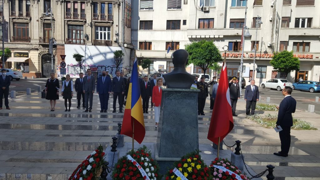 Bükreş’te ilk olarak Bükreş Büyükelçiliği tarafından Atatürk Büstü önünde bir tören gerçekleştirildi. Bükreş Büyükelçisi Füsun Aramaz, Atatürk Büstü’ne çelenk bırakarak saygı duruşunda bulundu.