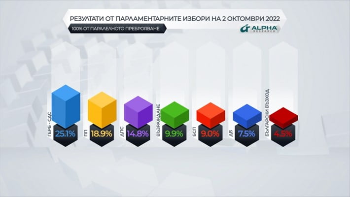 Alpha Research kamuoyu araştırma şirketinin açıkladığı sandık çıkış anketlerine dayalı ilk sonuçlarına göre, Bulgaristan’ı 2021 yılına dek yaklaşık 12 yıl yöneten eski Başbakanlardan Boyko Borisov’un lideri olduğu GERB partisi verilen oyların yüzde 25,5’ini alarak, seçimi birinci sırada bitirdi.