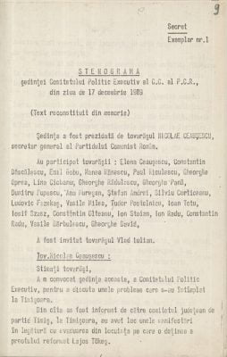- Nicolae Ceausescu: Yani önerilen önlemi kabul etmiyor musunuz? Sonra (kağıtları önüne çarparak ve sandalyesinden kalkarak), başka bir genel sekreter seçin! (Kapıya yürür, o noktada Silviu Curticeanu onu takip eder ve ona şöyle söyler: Öyle değil, genel sekreter yoldaş. Seni asla terk etmeyeceğim, her zaman senin yanında kalacağım.