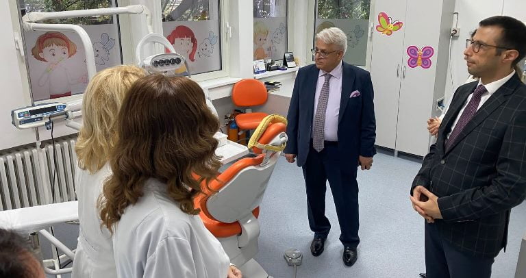 Timebalkan.com’un haberine göre Üsküp’teki TİKA Projelerini yerinde inceleyen Çevik, ilk olarak “Aziz Panteleymon” Üniversitesi Diş Hekimliği Fakültesi Hastanesi Bulaşıcı Hastalıklar, Pediatri ve Önleyici Diş Hekimliği Bölümlerinin Yenilenmesi Projesi için TİKA Üsküp Koordinatörü Halim Ömer Söğüt ile birlikte Dişhekimliği Fakültesine giderek Prof. Dr. Elizabeta Georgievska – Pendarovska ile birlikte hastane Müdürü Arian Daci ve öğretim üyeleri eşliğinde klinikleri ziyaret edip çalışan ve akademisyenlerden projenin karakteristiği ve ülkeye yararları konularında bilgiler aldı.