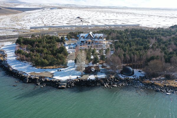 Arpaçay Kaymakamı Muhammed Burak Akköz, AA muhabirine, Çıldır Gölü'nün Kars'ın Arpaçay ilçesi bölümünde yer alan kütük evin yapımında sona gelindiğini söyledi.