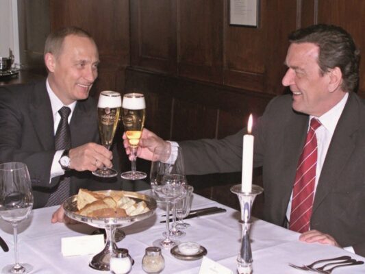 - Rusya Devlet Başkanı Vladimir Putin ve eski Almanya Başbakanı Gerhard Schroeder iki ülke arasındaki enerji ittifakını kutluyor.