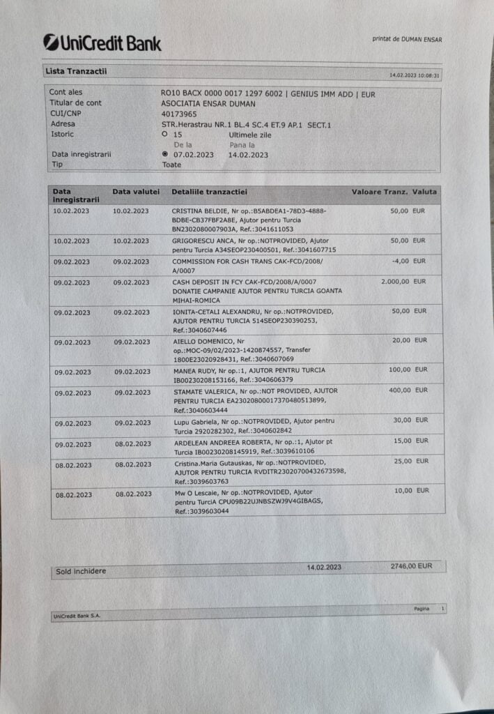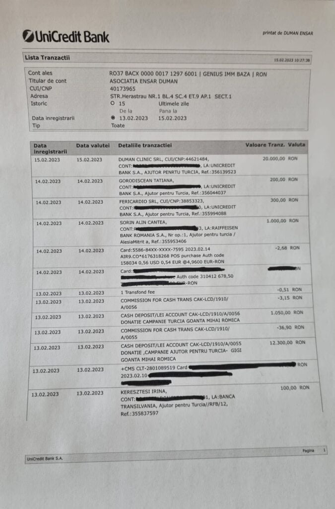 *Romanya Türk Toplumu içerisinde sağlık turizmi alanındaki faaliyetleri ve Rumen toplumu tarafından sevilişi ve güvenirliği ile ön plana çıkan iş adamı Ensar Duman’ın kendi adı ile kurduğu hayır faaliyetleri yürüten Ensar Duman Vakfı tarafından Cuma günü akşamı itibarı ile 26 bin 500 Euro Bükreş Büyükelçiliği’nin açtığı Deprem yardımı hesabına aktarıldı