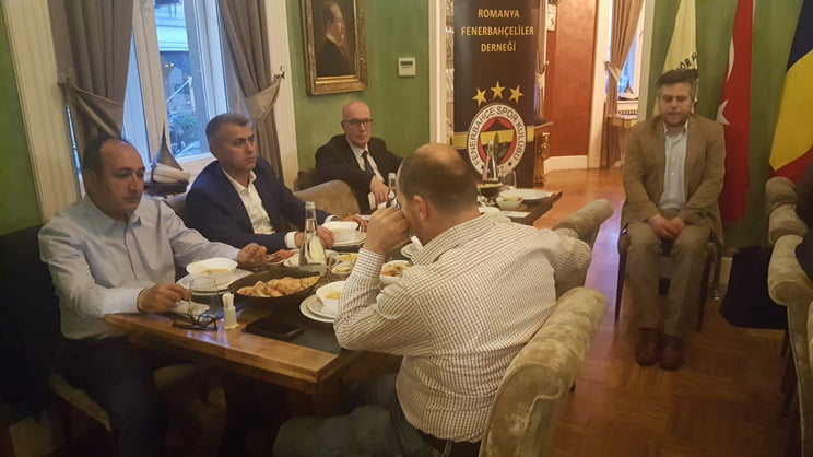 Romanya Fenerbahçeliler Derneği Bükreş’te iftar yemeği verdi. Fenerbahçeliler Derneği Yönetim Kurulu Başkanı Olcay Kızıl, Başkan Vekili Aziz Karaca, Genel Sekreter Oktay Kızıl ve diğer Dernek yetkililerin ev sahipliği yaptığı iftar yemeğine Romanya’da resmi temaslarını sürdüren Ticaret Bakan Yardımcısı Sezai Uçarmak ve beraberindeki heyet, Bükreş Büyükelçisi Füsun Aramaz, Ticari Müşavir Sude Gürcan, Türkiye Romanya İş Konseyi Başkanı Ömer Süsli, TİAD Başkanı Güven Güngör, Türk Yatırım Derneği Başkanı Nazmi Doğan ve diğer davetliler katıldı.