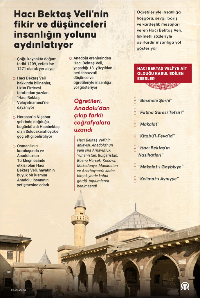 *Engin hoşgörüsüyle bilinen Hacı Bektaş Veli, yaşadığı 13. yüzyıldan bugüne öğretileri ve mesajlarıyla insanlığa sevgi, barış ve kardeşlik için yol gösteriyor