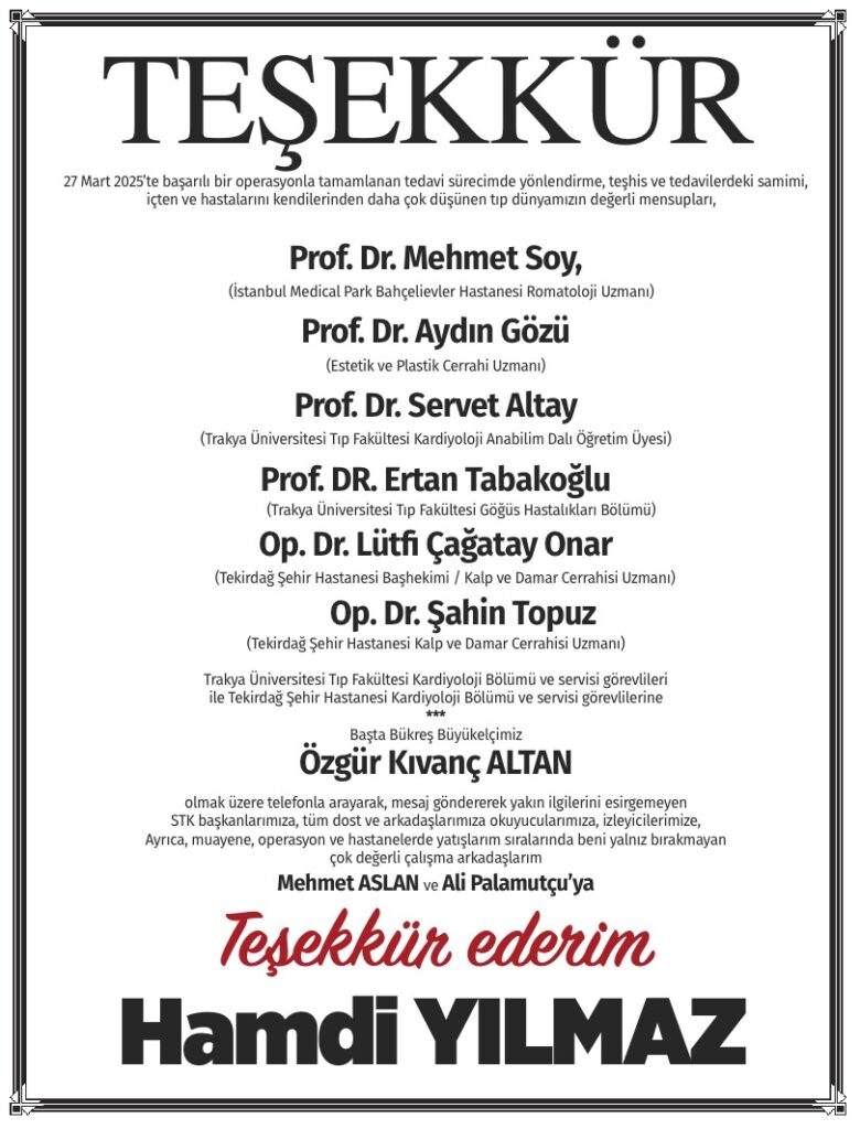 HAMDİ YILMAZ'DAN TEŞEKKÜR
