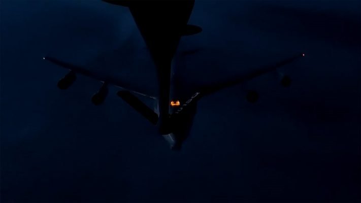 Türkiye Cumhuriyeti Milli Savunma Bakanlığının (MSB), Twitter hesabından yapılan paylaşımda, "Almanya'dan kalkan ve Güvence Tedbirleri kapsamında görev yapan NATO'ya ait E-3A AWACS uçağına, Hava Kuvvetlerimize ait KC-135R tanker uçağıyla Romanya üzerinde yakıt ikmali yapıldı. Bu görevle, bir NATO uçağına ilk kez gece görevi esnasında havadan yakıt ikmali sağlanmış oldu." ifadeleri kullanıldı. (AA)