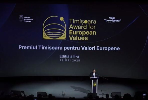 Romanya Dışişleri Bakanı Emil Hurezeanu, Perşembe günü Timișoara'da Avrupa Parlamentosu (AP) Başkanı Roberta Metsola'ya Timișoara Avrupa Değerleri Ödülü'nün takdim törenine katıldı. İkinci kez düzenlenen Timișoara Avrupa Değerleri Ödülü, Avrupa değerlerini destekleyen ve uluslararası alanda tanınan şahsiyetleri onurlandırıyor.