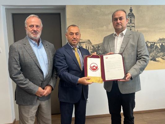 Başkan Attila Berlinger'in makamında gerçekleşen ziyarette, Başkan Yardımcısı Prof. Dr. György Fusz, Dış İlişkiler Sorumlusu Pinter Edina'da hazır bulundu.