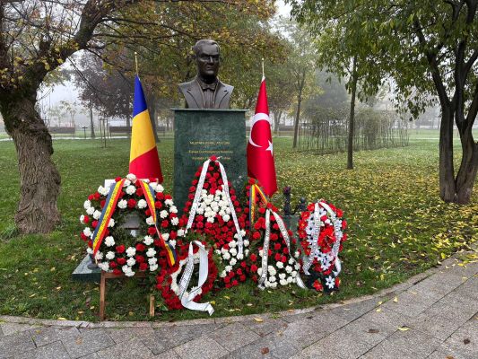 Ulu önderimiz Gazi Mustafa Kemal Atatürk, ebediyete intikalinin 87. yıldönümünde Köstence Belediye Parkındaki büstü önünde düzenlenen törenle anıldı.