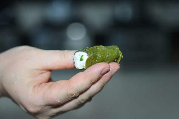 Kalkan, lor dolmasının özel günlerde daha çok tercih edildiğini belirterek, "Dolmamızın içini hazırlarken bir baş soğanı sıvı yağda kavurup bulgurunu katıp sütle beraber pişiriyoruz. Piştikten sonra taze lorumuzu, kaymağımızı, tereyağımızı, yeşil soğanımızı koyup yoğuruyoruz. Hazır olan içimizi evelikle buluşturup sarıyoruz." diye konuştu.