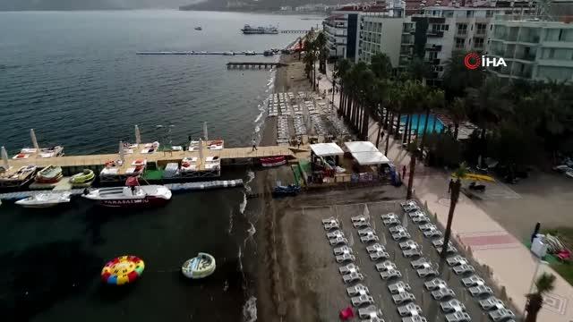 *MUĞLA - Türkiye'nin ve dünyanın gözde turizm kentlerinden olan Muğla'nın Marmaris ilçesinde oteller yeni sezon hazırlıklarını tamamlayarak misafirlerini ağırlamaya başlarken, çoğunluğu İngiltere, İsrail, Belçika ve İranlı olan turistler güneşi gördükçe kendilerini sahillere attı