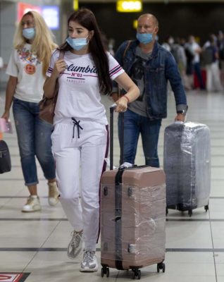 Kovid-19 nedeniyle yoğun tedbirlerin alındığı havalimanına aileleri veya arkadaşlarıyla gelen turistler, maske takarak uçaktan indi. Termal kameralardan geçen ve belirli noktalara yerleştirilen dezenfektanlarla ellerini dezenfekte eden turistler, pasaport ve valiz işlemlerinin ardından servislerle konaklayacakları otellere hareket etti.
