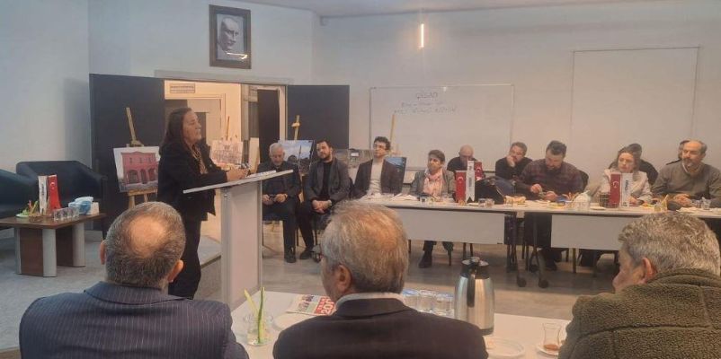 ÇİSAD Başkanı Aptullah Kasapoğlu’nun açılış konuşması ile başlayan seminerde, mübadele yolculuğu sırasında halasını kaybeden mübadil torunu ve işadamı Ergin Kalınoğlu bir konuşma yaptı.