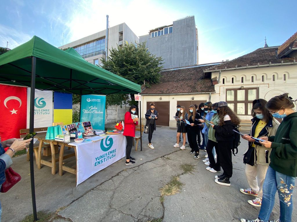 Küresel salgın kısıtlamalarına rağmen Bükreşlilerin yoğun katılımıyla gerçekleşen etkinlikte Bükreş Yunus Emre Enstitüsü tarafından Türk Dili tanıtımı için farklı etkinlikler düzenlendi.