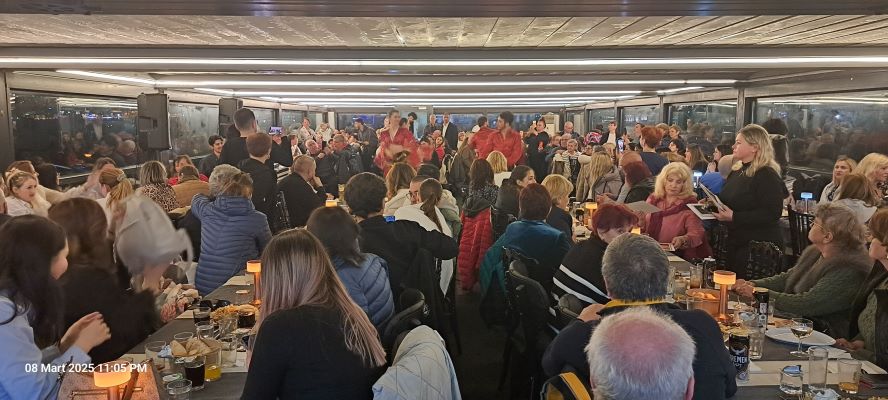 İstanbul'un tarihi ve turistik yerlerini ziyaret eden turistler akşam da günü Boğazda Türk gecesine katılarak doyasıya eğlendiler.