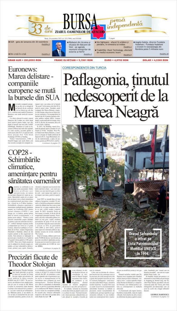 Romanya’nın ticaret gazetelerinden Bursa gazetesi “Karadeniz'in keşfedilmemiş diyarı Paphlagonia” başlığı ile yayınladığı yazıda Kuzey Anadol’unun gözde kentleri Safranbolu ve Amasra’yı anlattı