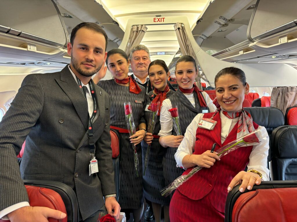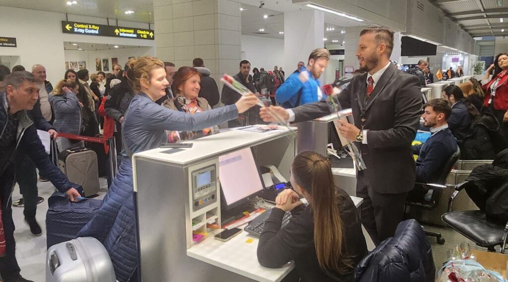*8 Mart Dünya Kadınlar günü vesilesiyle Bükreş Henri Coandă Havalimanında Türk Hava Yolları tarafından kadın yolculara çiçek takdim edildi