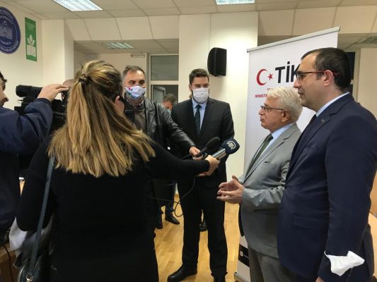 TİKA Başkan Yardımcısı Dr. Mahmut Çevik Saraybosna Üniversitedeki törende üniversite Rektör Vekili Prof. Dr. Cenana Husremoviç ve Fakülte Dekanı Prof. Dr. Muhammed Brka’ya anlamlı bir hediye verdi.