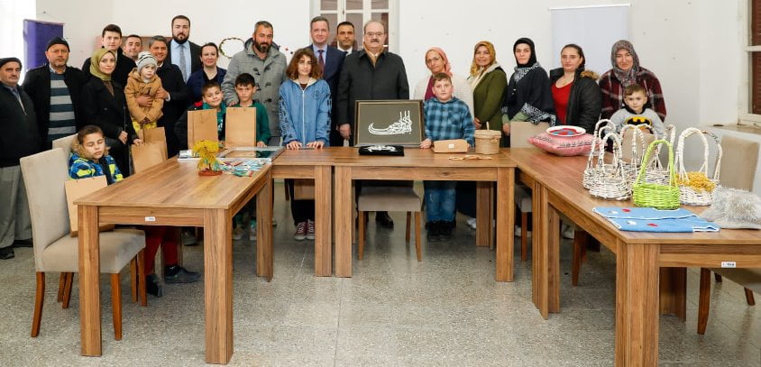 Program kapsamında TİKA tarafından donanım desteği sağlanan Karpaz Kaplıca Köyü Kadın Kursu’nda incelemelerde bulunan heyet, kursiyer kadınlardan üretim faaliyetleri hakkında bilgi aldı.