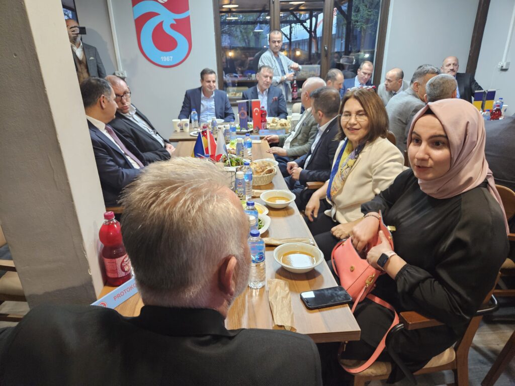 Pazartesi günü verilen Romanya Trabzonsporlular Derneği Başkanı Mehmet Fazlıoğlu, önceki dönem başkanı Süleyman Bostan ve diğer Dernek yetkililerinin ev sahipliği yaptığı resmi iftar yemeğine, Bükreş Büyükelçisi Özgür Kıvanç Altan, Büyükelçiliğe bağlı kurum ve kuruluş temsilcileri, DEİK Türkiye Romanya İş Konseyi Yürütme Kurulu Üyesi Ömer Süsli, DTİK Romanya temsilcisi Güven Güngör, TİAD Başkanı Ufuk Tandoğan, Başkan Yardımcısı Gürsel Öztürkmen, MÜSİAD Romanya Temsilcisi Cem Aksoy ile Galatasaraylılar Derneği, Beşiktaşlılar Derneği ve diğer davetliler katıldı.