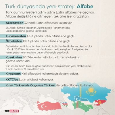 Günümüzde Türk Cumhuriyetleri adım adım alfabe değişikliğine giderek, Kiril’den Latin’e geçiyor.