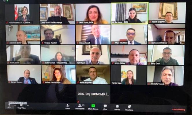 *Video konferans yolu ile gerçekleşen toplantıya Bükreş Büyükelçisi Aramaz ve Ticaret Müşaviri Gürcan da katıldı