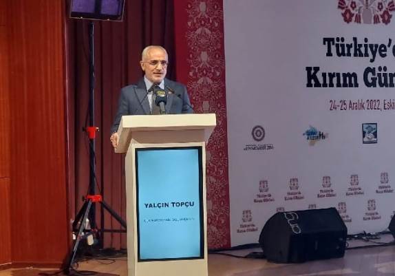 Cumhurbaşkanı Başdanışmanı Yalçın Topçu da, “Altı aylıkken Ana kucağında sürgüne gönderilen, milletimi tanımayanları bende tanımam dediği için ömrünün 15 yılını zindanlarda, işkence, sürgün ve açlık grevleriyle geçiren, halkının var olma mücadelesini, teröre, şiddete başvurmadan ve asla taviz vermeden halen sürdüren, Türk Dünyasının büyük evladı, Kırım’ın efsanevi mili lideri Sn. Mustafa Abdülcemil Kırımoğlu’nun yiğit kardeşleri ve Kırım davasında her daim merhum Şefika Gaspıralı Annemiz gibi en önde yer alan, soylu fedakar ve cefakar Kırımlı anneler ve bacılar, değerli basın mensupları sizleri Türkiye Cumhuriyeti Cumhurbaşkanı Sayın Recep Tayyip Erdoğan ve şahsım adına saygıyla selamlıyorum diyerek başladığı konuşmasında, “Türkiye; Kırım başta olmak üzere Ukrayna topraklarından yapılan ilhakları ve işgalleri tanımıyor ve kabul etmiyor, Ukrayna'nın toprak bütünlüğünü savunmaya ve Ukrayna halkına kesintisiz insani destek içinde gerekeni yapmaya devam ediyor. Türkiye; Komşumuz olan iki ülke arasında devam eden ve iki ülkeye de maddi manevi vahim zararlar verdiği kadar, bölgenin ve dünyanın da zararına olan bu savaşın bitip, kalıcı ve adil bir barışın gerçekleşmesi için elinden gelen gayreti ve çabayı her platformda göstermektedir. Büyük Atatürk’ün vasiyeti ‘Yurtta sulh, cihanda sulh’ ilkesine bağlı olan Türkiye; ‘Türk Samimiyeti’ ile bütün insanlık için kalıcı bir barış, daimî bir refah ve kesintisiz esenlik istiyor’’ dedi ve Ukrayna’nın toprak bütünlüğü, Kırım Tatarı soydaşlarımızın hak ve hukukları için mücadele eden tüm kahramanları saygıyla selamladığını belirterek, 2023 yılının bütün insanlık için hayırlara vesile olmasını diledi.