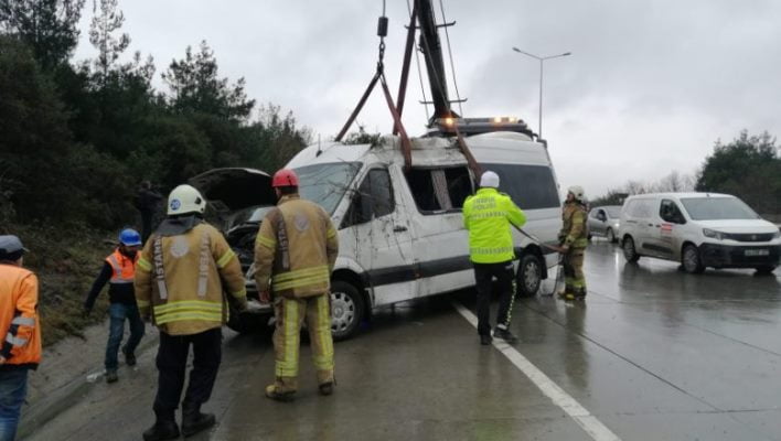 Kemerburgaz yolu İstanbul Havalimanı istikametinde ilerleyen, Bayram S. idaresindeki 34 FLA 044 plakalı servis minibüsü, sürücüsünün direksiyon hakimiyetini kaybetmesi sonucu devrildikten sonra yol kenarındaki toprak alana savruldu.