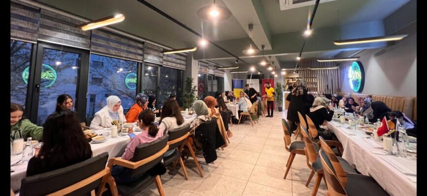 Bükreş’te Zeina Restoran’da gerçekleşen iftar yemeğinde Kadınlar Kolu başkanları Nursel Türkmenoğlu ve Ayşegül Çelik üyelerle yapacakları faaliyetler hakkında fikir beyanında bulunarak görüş alışverişi gerçekleştirdiler.