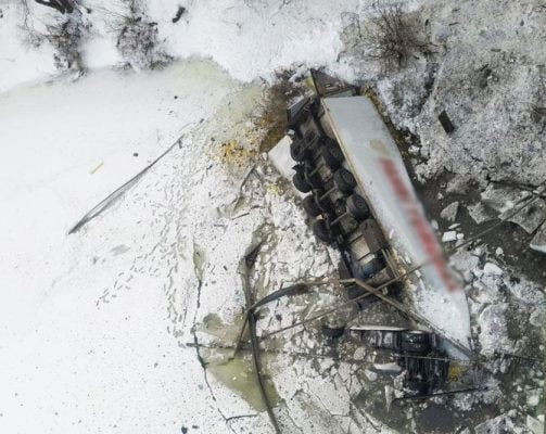 Türkiye’den Belarus’a limon taşıyan Türk plakalı TIR Ukrayna’nın Çernigiv kenti yakınlarında kaza yaptı. TIR’ın gece yarısı saatlerinde bariyerleri aşarak köprüden donmuş nehre düştüğü bildirildi. Aracın hala sudan çıkarılmadığı belirtilirken, 30 yaşındaki Türkiye vatandaşı TIR şoförünün olay yerinde hayatını kaybettiği bildirildi. (QHA)