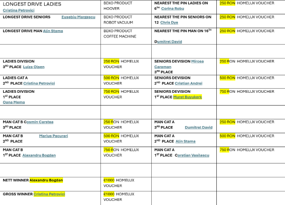 National Praktiker Cup (Ulusal Praktiker Kupası) adıyla düzenlenen golf turnuvasına 9’u Türk, bir eski Başbakan Victor Ponta olmak üzere toplam104 golf oyuncusu katıldı.