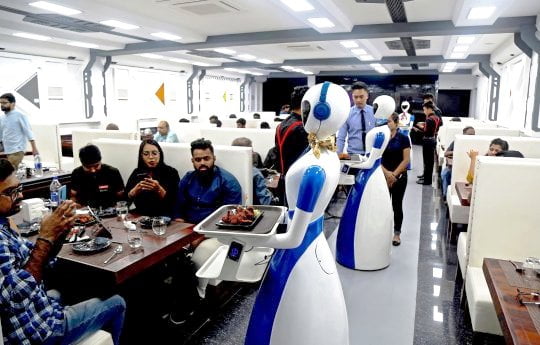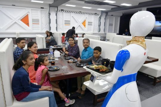 Hindistan’ın Bangalore kentinde bir robot restaurant zincirinin altı robot bayan garsonunu müşterilerine tanıttı.