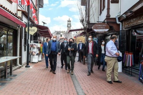 Heyet, daha sonra Hamamönü Sanat Sokağı'na geçti. Buradaki atölyeleri gezen heyet, Hamamönü'nde bol bol hatıra fotoğrafı çektirdi. Heyet, Altındağ Belediyesi tarafından Hamamarkası'nda devam eden restorasyon çalışmaları hakkında da bilgi aldı. (İHA)